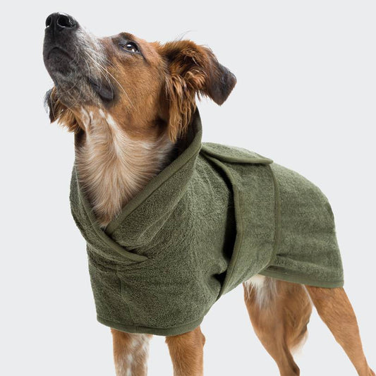 Hundebademantel aus Bio-Baumwolle "Olive"