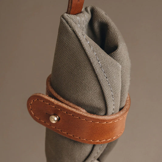 Faltbarer Reisenapf Melo in Dune Tan mit grünem Leder