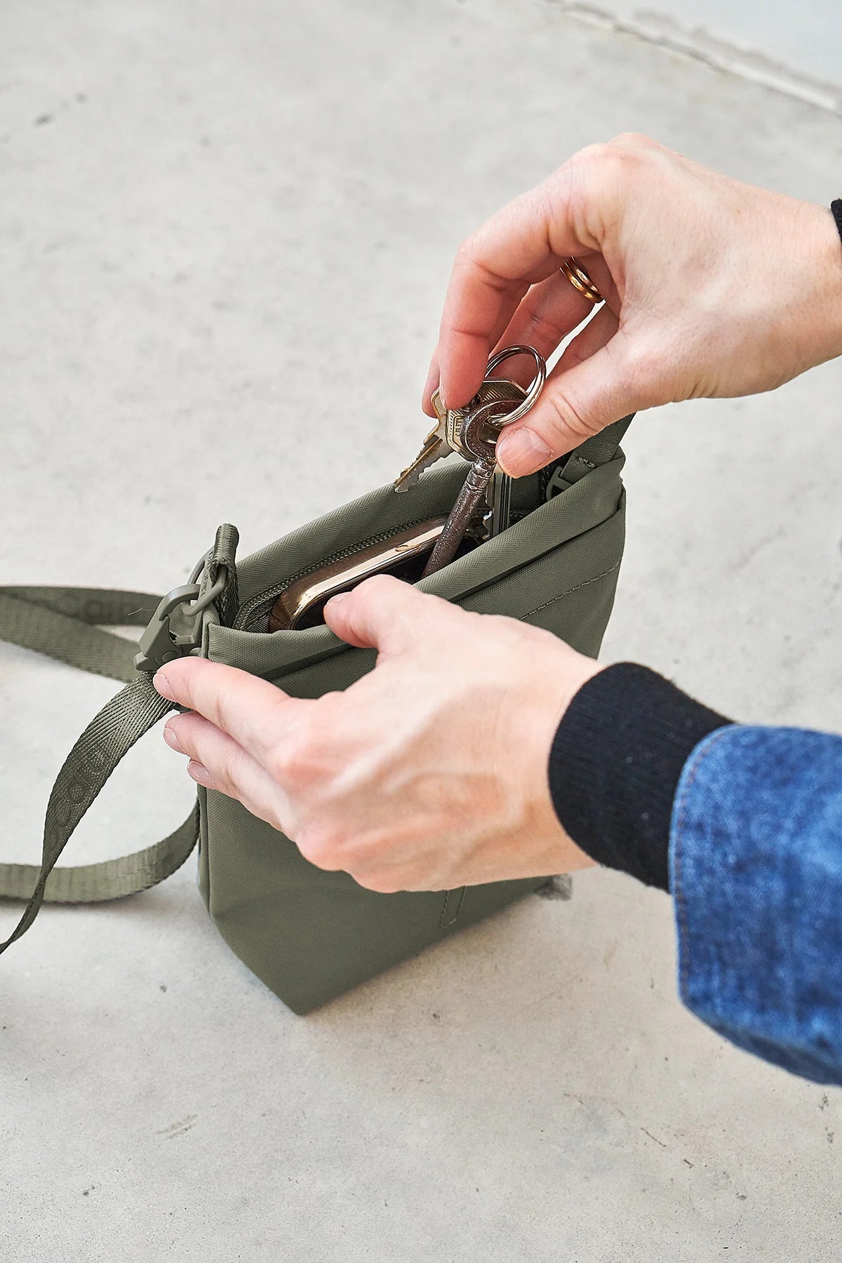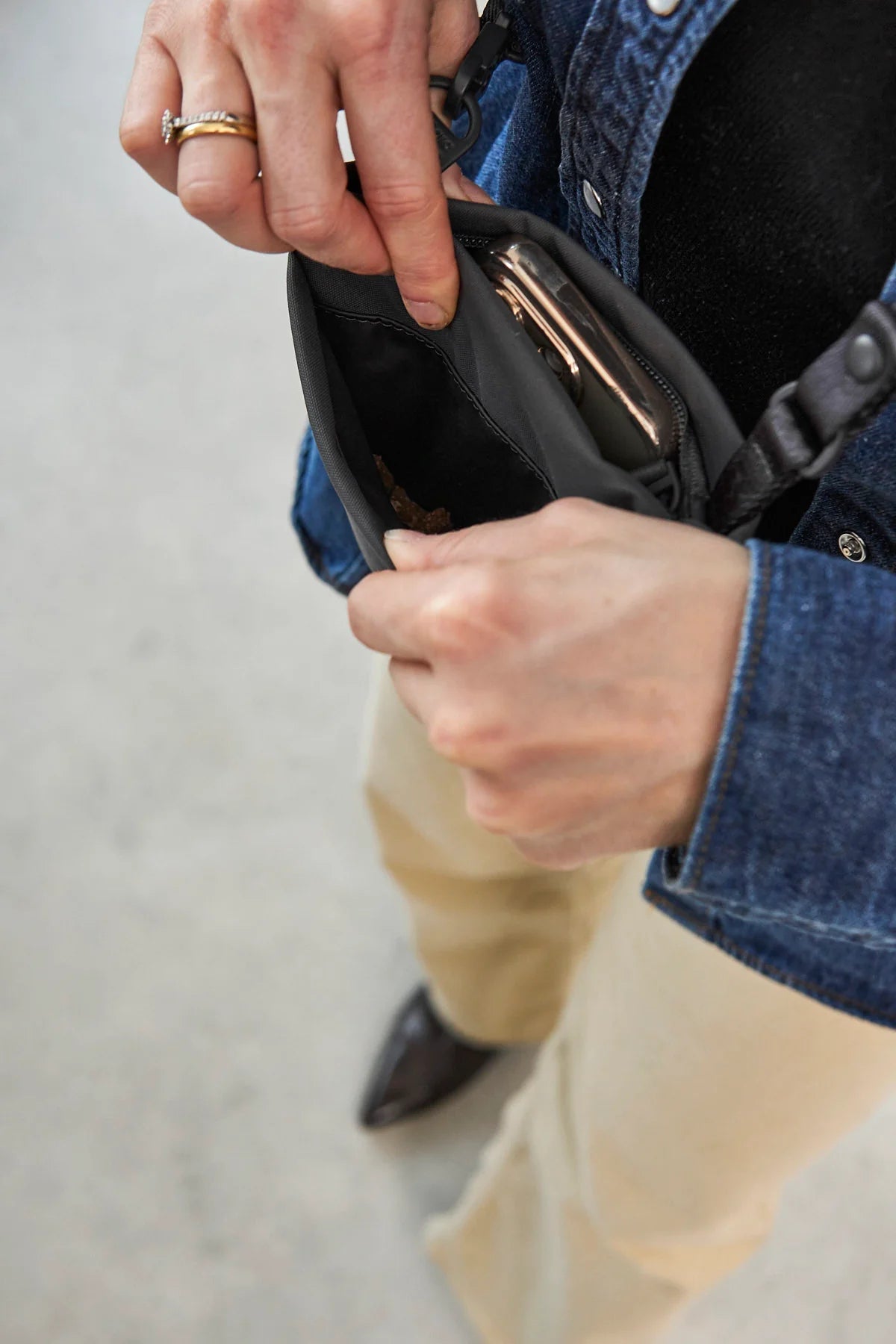 Ein zusätzliches Fach mit Reißverschluss sorgt dafür, dass alle wichtigen Essentials, wie Schlüssel, Handy und ein kleines Portemonnaie, sicher verstaut und jederzeit griffbereit sind.