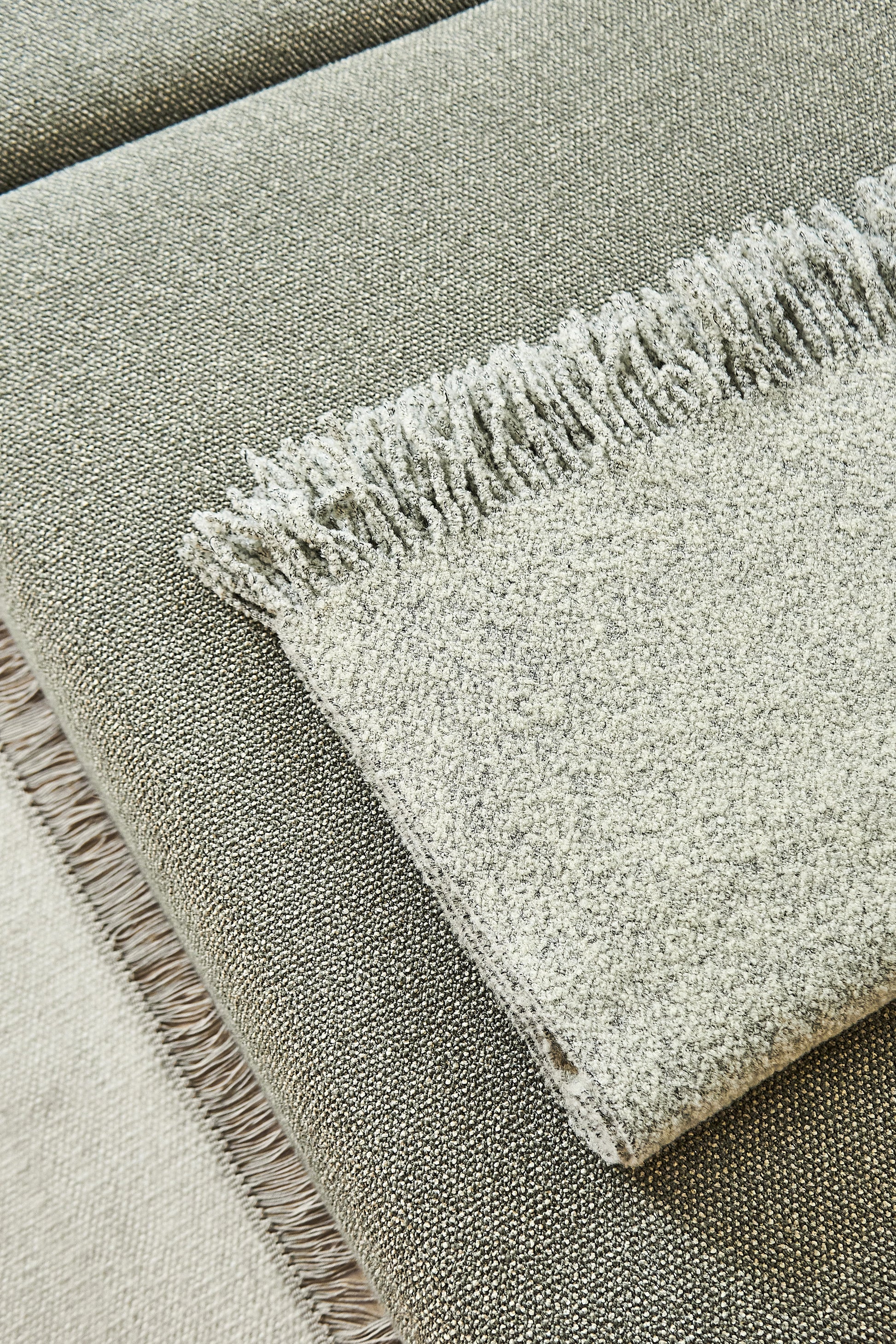 Die weiche Bouclé-Struktur fühlt sich nicht nur unglaublich angenehm an, sondern wirkt dank ihres hohen Wollanteils von 80 % auch temperaturregulierend – perfekt für entspannte Momente, zu jeder Jahreszeit.