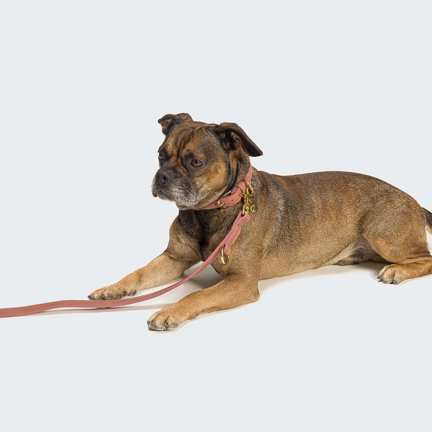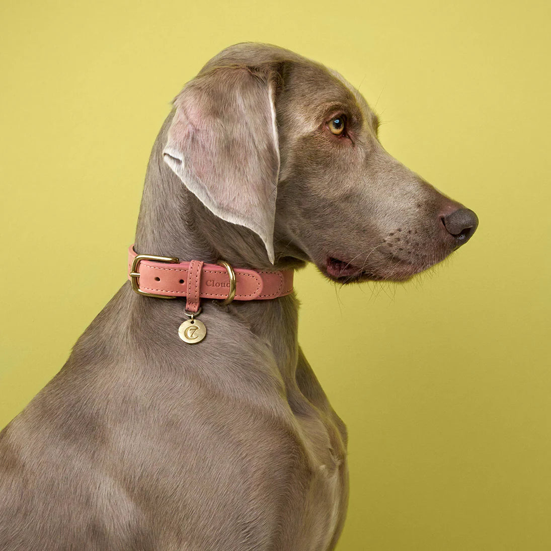 Lederhalsband für Hunde aus besonders weichem Nubukleder in Peach mit Schließe und Münze aus echtem Messing.