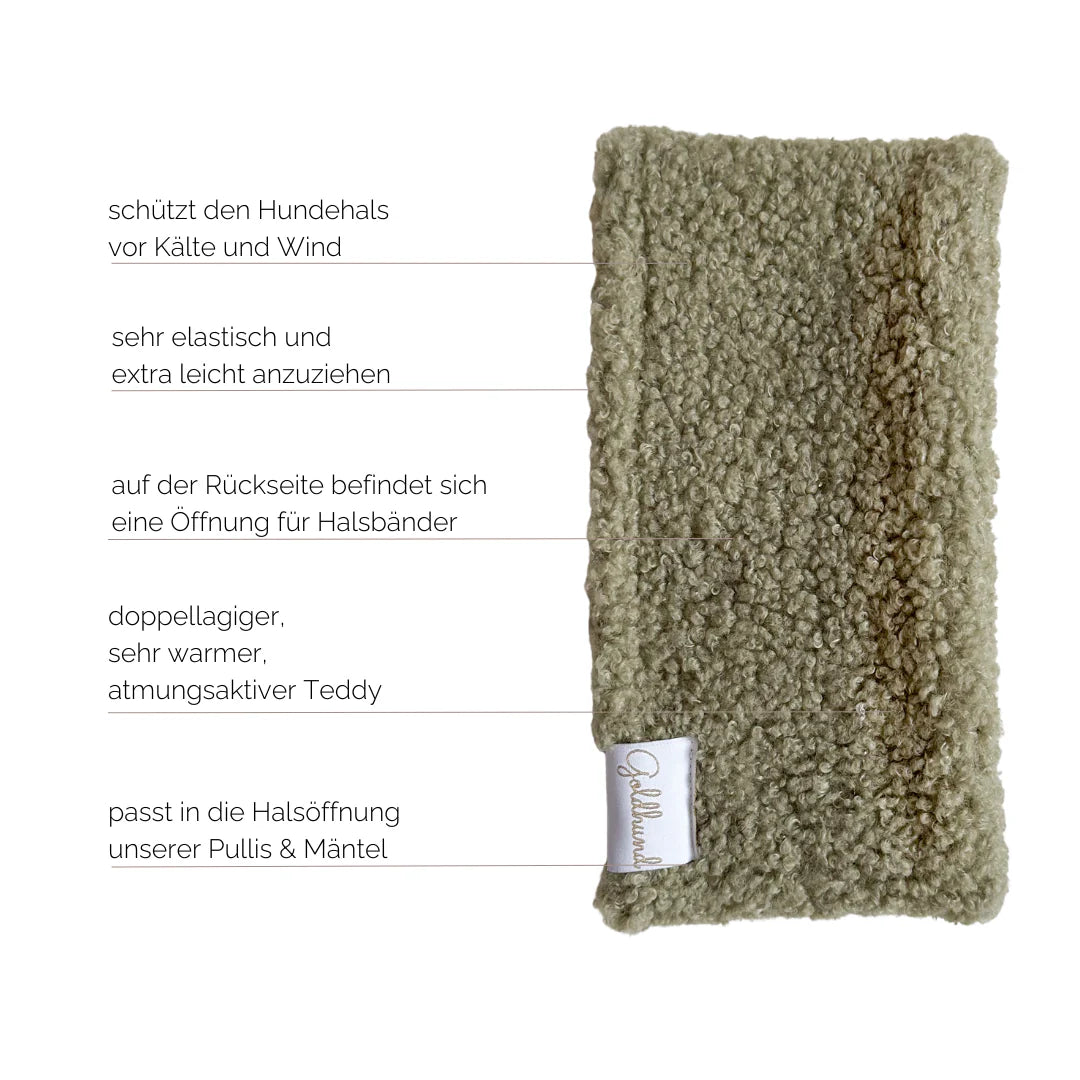 Der warme, runde Goldhund Hundeloop in Teddyoptik schützt den Hundehals vor Kälte wann immer es nötig ist. Die Goldhund Hundemäntel und Pullover sind perfekt auf die Form des Hundeloops abgestimmt, so dass die Produkte optimal miteinander kombiniert werden können.